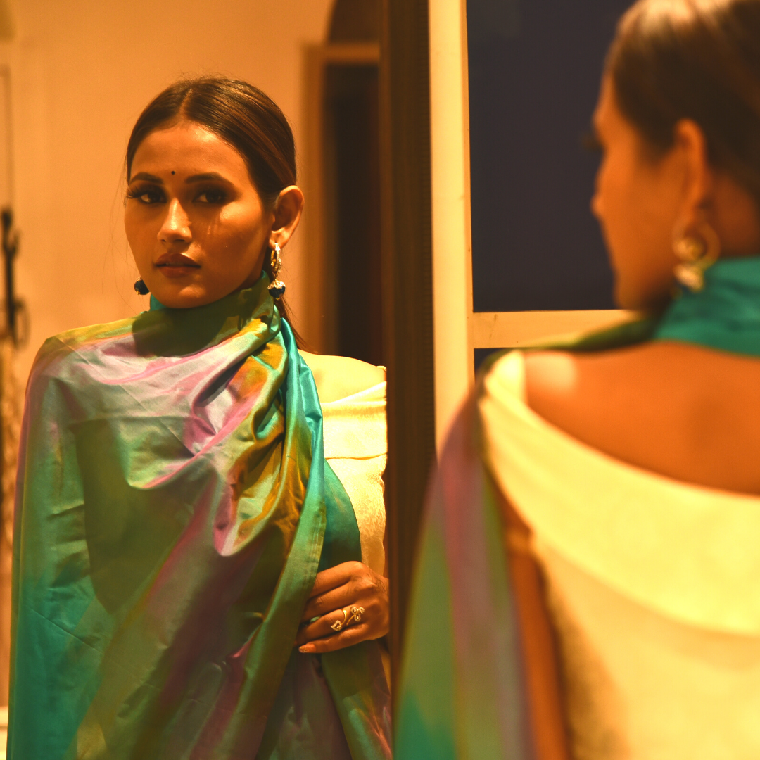 Fabrics that we use mainly are Chiffon Georgette, Cotton, Dupion Silk, Kora, Satin Silk, Silk By Cotton, Tussar Silk, Katan Tissue, Tussar Georgette, Kora Net, Katan Silk etc. which are pure and natural, handloom products.