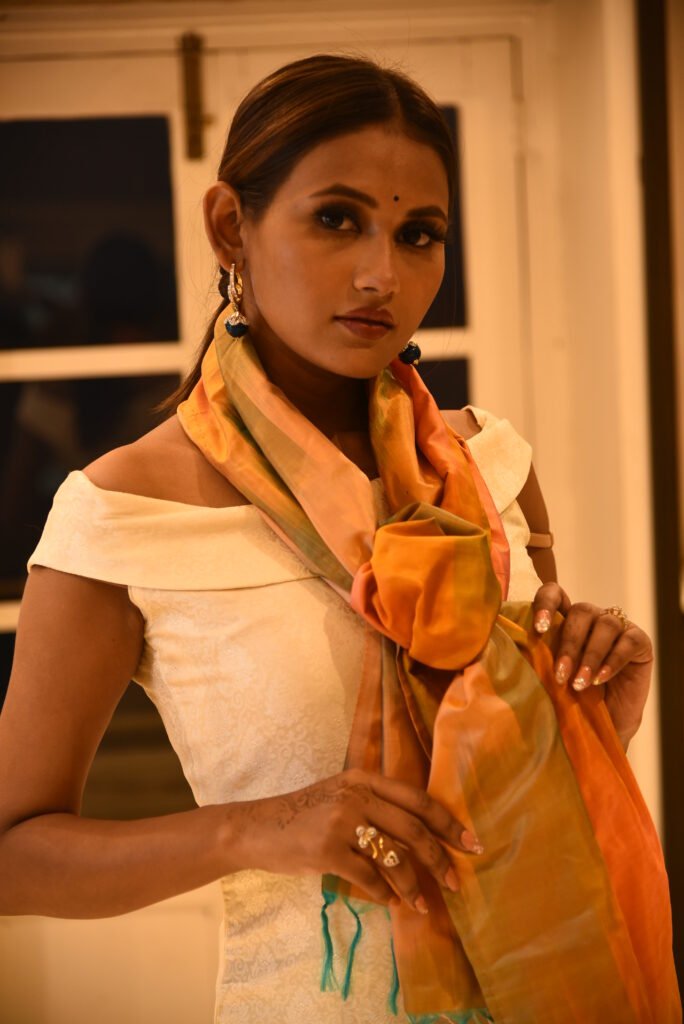 Fabrics that we use mainly are Chiffon Georgette, Cotton, Dupion Silk, Kora, Satin Silk, Silk By Cotton, Tussar Silk, Katan Tissue, Tussar Georgette, Kora Net, Katan Silk etc. which are pure and natural, handloom products.