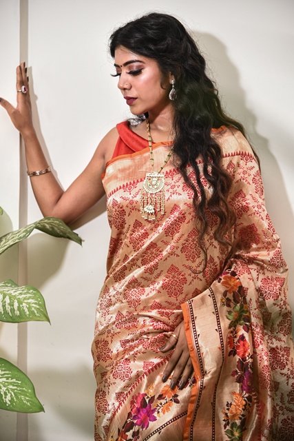 Orange Colour saree Katan Silk Patola