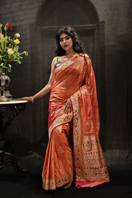 Orange Colour Saree Katan Silk kadhuan Buta