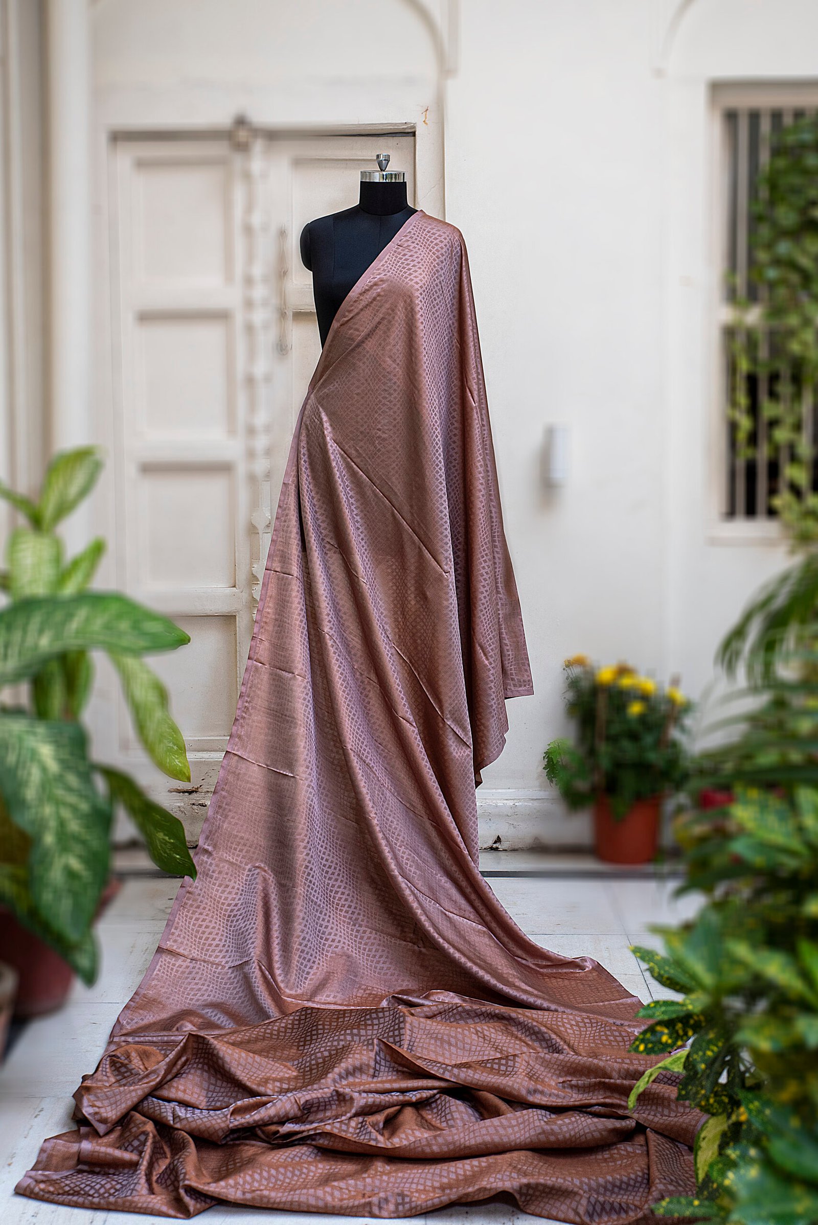 Unlike heavier silk fabrics, Tanchoi is known for its comfort and ease of wear, making it suitable for long durations. The delicate patterns, often inspired by floral and traditional motifs, give the fabric a graceful and refined look.